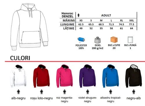 –Hanorac cu glugă, cu buzunar cangur și design bicolor