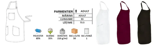 - Ideal pentru uniforme horeca și textile promoționale.